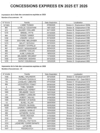 Si l’une de ces concessions vous concerne, merci de contacter le service cimetière au 02 35 39 69 31