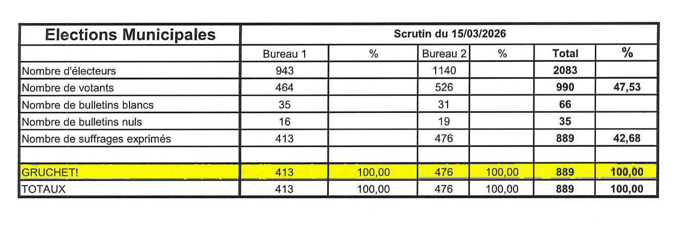 La liste Gruchet – Municipales 2026 est élue en intégralité.
