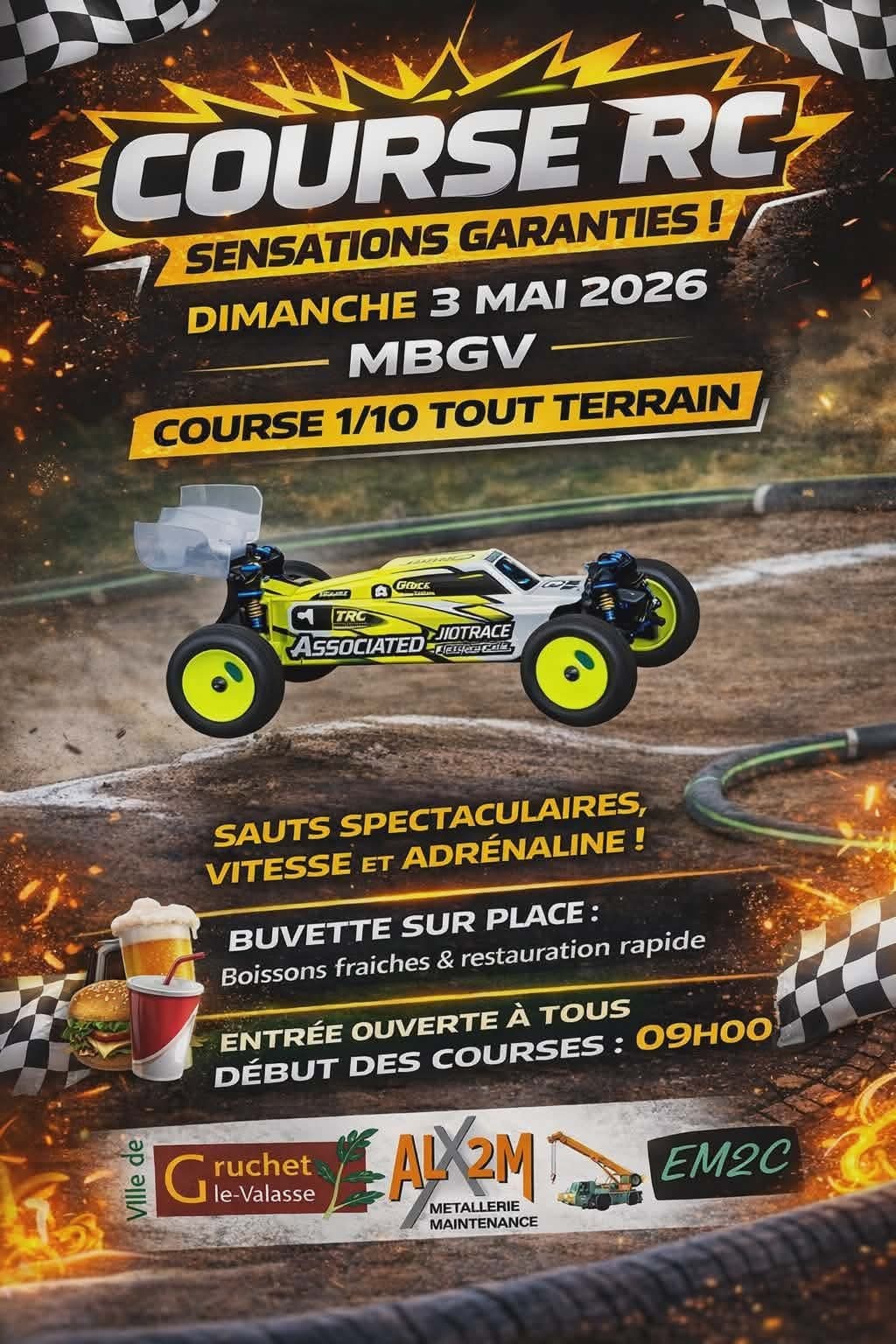 Une course de mini-bolides 1/10 tout terrain aura lieu toute la journée du dimanche 3 mai sur le terrain au bout de la rue Saint Marcel (juste après la voie ferrée). Début des courses à 9h00. Entrée libre et gratuite.
