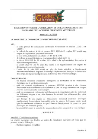 L’arrêté municipal de Gruchet-le-Valasse 126/2025 stipule que, pour la conduite en trottinette électrique :